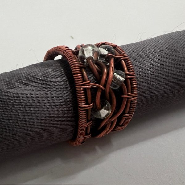 Jewelry is taught through different units. Some of the projects students are expected to complete include jump rings (tiny rings connected to make a chain), sheet metal fabrication (cutting and shaping metal pendants), and lamp work (glasswork).